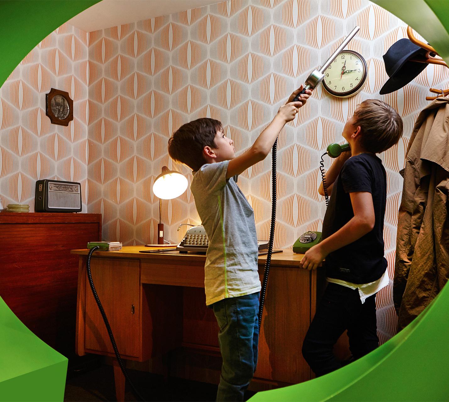Innovative Medieninstallationen vermitteln Geschichte und Gegenwart auf spielerische Art und Weise: Entziffern Sie Geheimcodes, verschlüsseln Sie Nachrichten und knacken Sie ihr sicherstes Passwort. Testen Sie Ihre Geschicklichkeit im Laser-Parcours: Ohne die Strahlen zu berühren, müssen Sie gegen die Zeit ankämpfen!